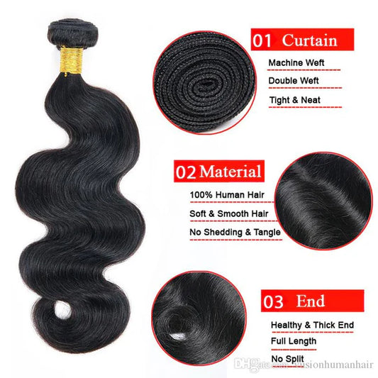 ZAVARIA HAIR Body Wave Natural Black high quality full in end Unprocessed Human Hair Extensions
